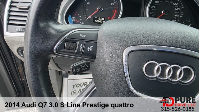 Rev up your style with this sleek and powerful 2014 Audi Q7! With its luxurious S Line Prestige trim, this SUV is sure to turn heads wherever you go. Boasting a turbocharged V6 engine, smooth automatic transmission, and all the premium features you could ask for - from heated leather seats to a panoramic sunroof - this Q7 has it all. Whether you're cruising down the highway or navigating city streets, this Audi offers a comfortable and exhilarating ride every time. Don't settle for anything less than extraordinary - make this stunning Q7 yours today!Experience luxury on wheels with our 2014 Audi Q7. Drive away in style and comfort - schedule your test drive now!